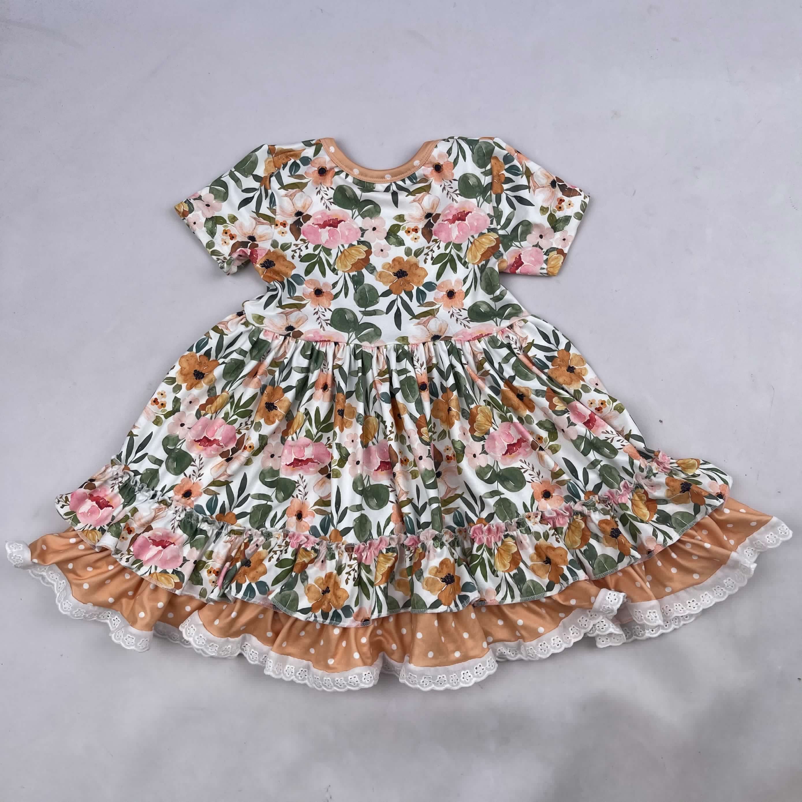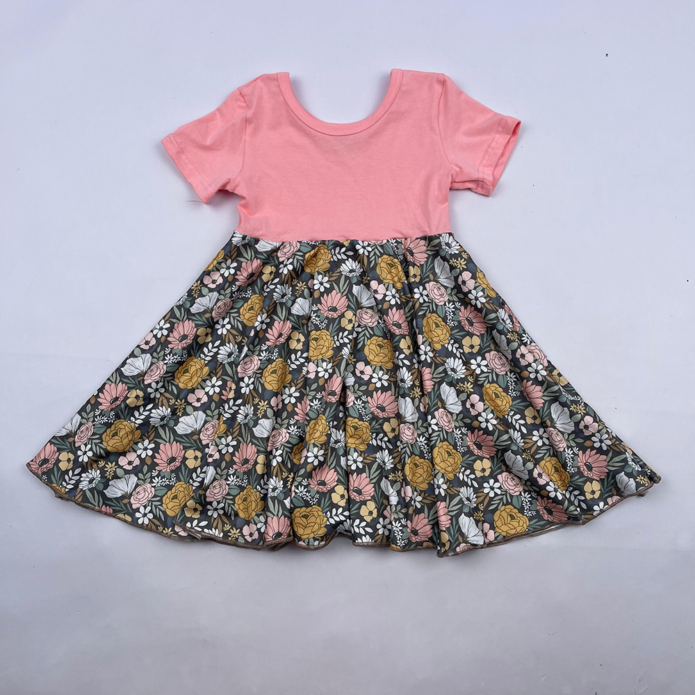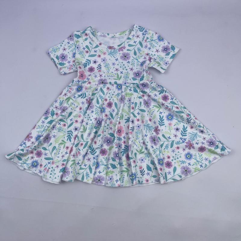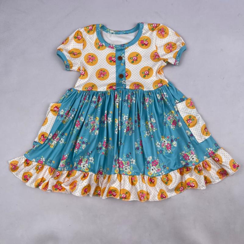 1pc/polybag,can be customizedNew Arrival Custom Baby blue Flower print dress toddler girls spring ruffle boutique dress for kids party dress