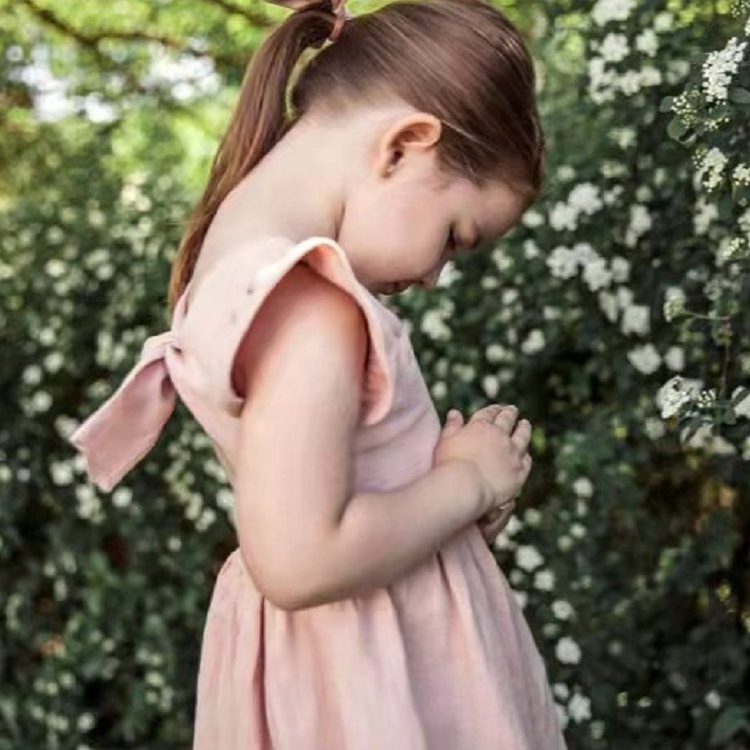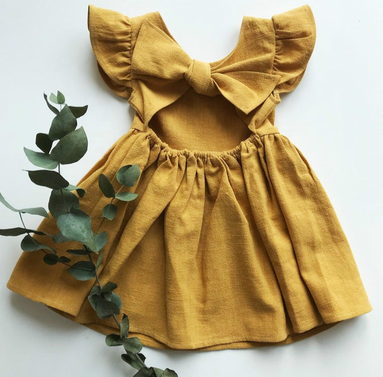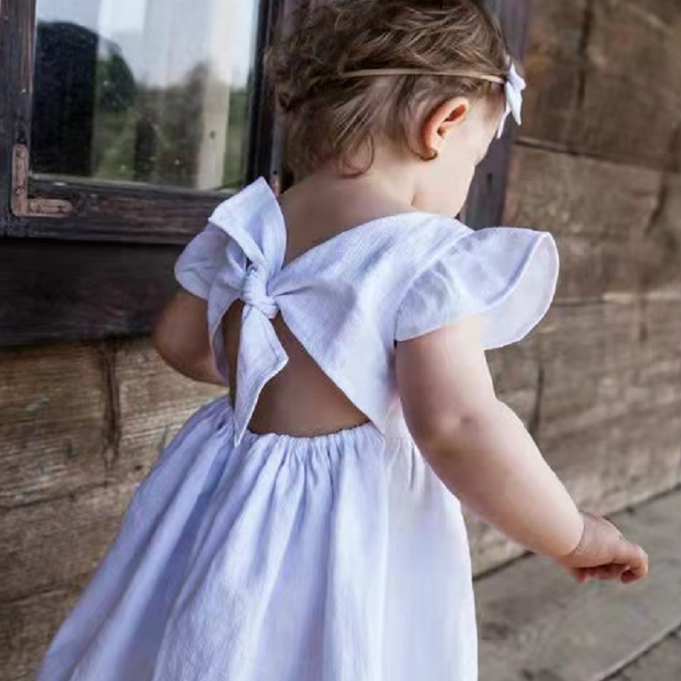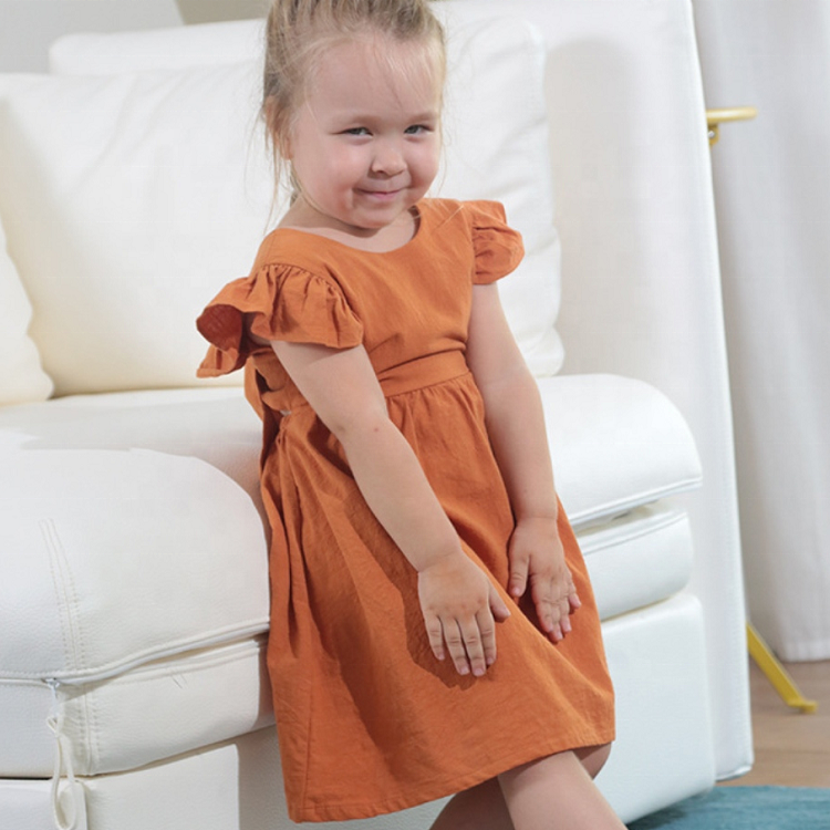 1pc/polybag,can be customizedoddler Baby Girl Dress Summer Solid Cotton Linen Halter Flutter Sleeve Bow Kids Casual Dresses